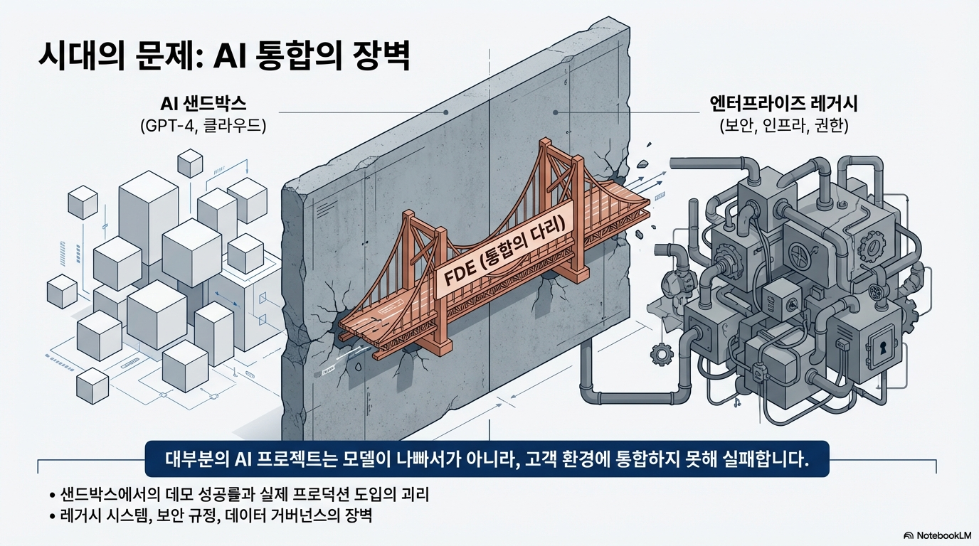 - FDE는 이 샌드박스와 레거시 사이를 연결하는 '통합의 다리' 역할을 수행합니다.